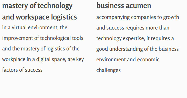 in a virtual environment, the improvement of technological tools and the mastery of logistics of the workplace in a digital space, are key factors of success